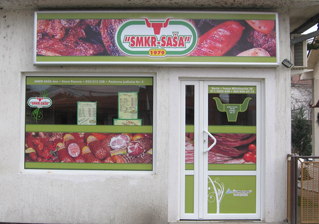 Danas je ovaj vid reklame gotovo neizbežan. Zna se da je zakonom obavezno isticanje firme i radnog vremena kao i još nekih detalja, tako da se grafikom na vratima i izlogu to najjevtinije rešava. Apliciranjem stakla na Vašem izlogu moguće je postići niz efekata. Prvo dobru uočljivost vaših proizvoda i usluga, zatim sprečavanje direktnog uticaja sunčevih zraka (ako je to potrebno), dobijanje intimnijeg, prijatnijeg poslovnog prostora na mestima gde su velike staklene površine itd. Na mestima gde su mali izlozi, obično se koristi katovana PVC folija, tako da je poruka preneta, a još uvek je moguće videti izložene proizvode. Kada je potrebno obezbediti diskreciju u lokalu a vidljivost ka spolja, tada koristimo perforiranu plotovanu PVC foliju. Sa specijalnim folijama koje imaju efekat peskiranog stakla, moguće je zatvarati cele površine ili u kombinaciji sa drugim raznim folijama dobiti veoma zanimljive forme.